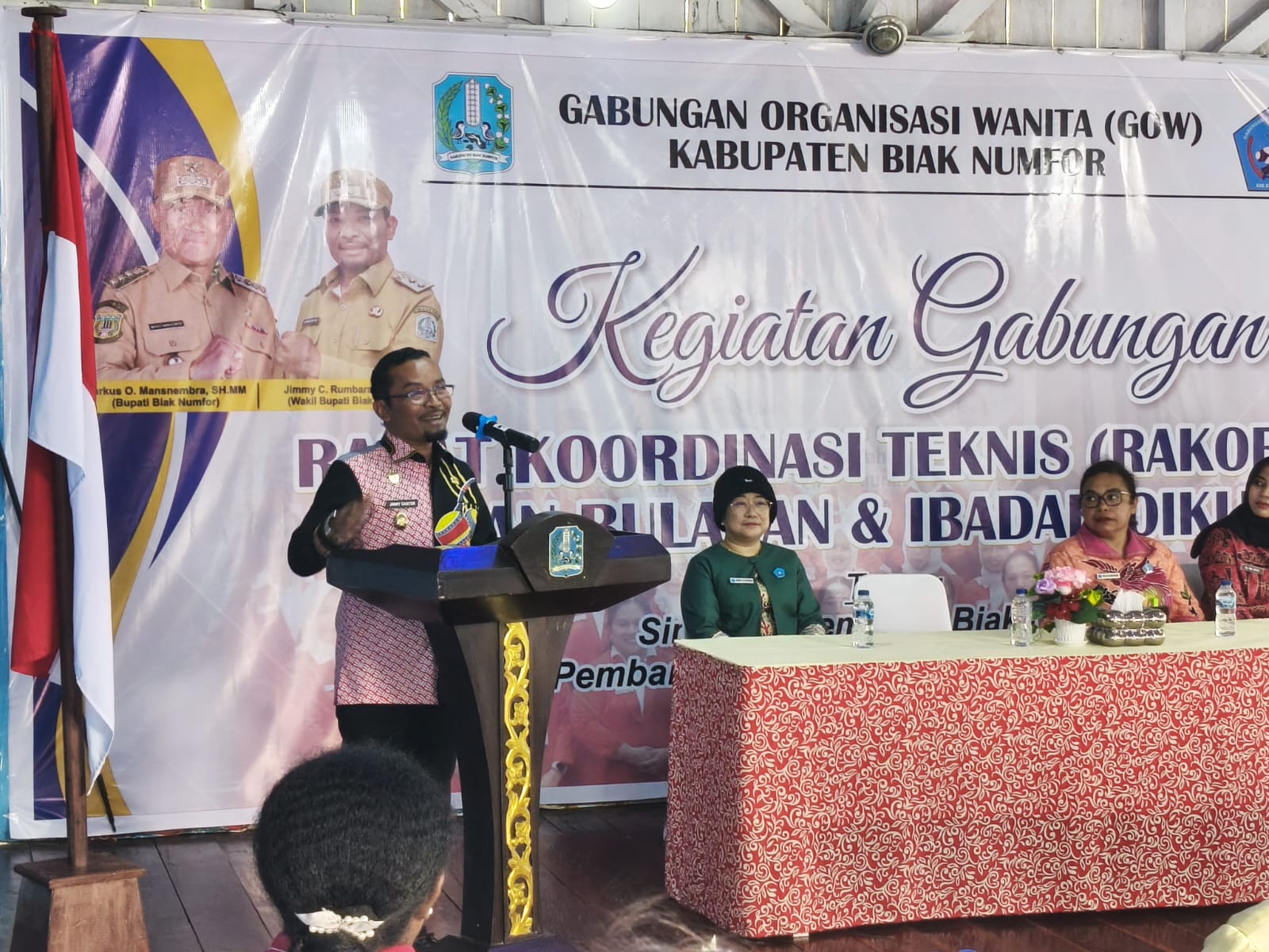 TNews, BIAK – Wakil Bupati Biak Numfor, Jimmy C.R Kapissa, membuka secara resmi Rapat Koordinasi Teknis (Rakortek) Gabungan Organisasi Wanita (GOW) Kabupaten Biak Numfor yang dirangkaikan dengan arisan bulanan dan ibadah oikumene di halaman kediaman Wakil Bupati Biak Numfor, Kamis (12/3/2026) Sore.