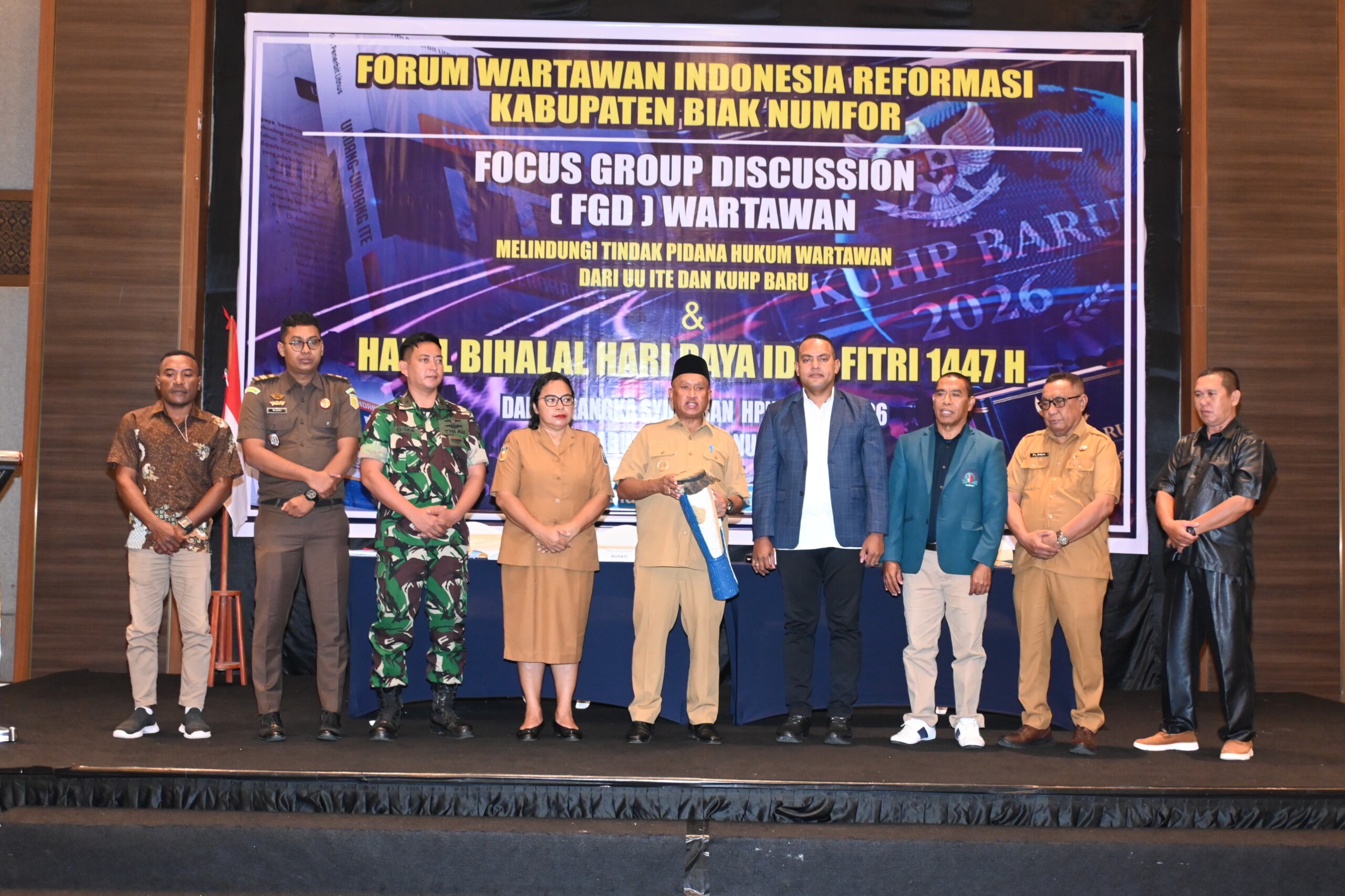 TNews, BIAK – Forum Wartawan Indonesia Reformasi (FWIR) Kabupaten Biak Numfor menghadirkan dua narasumber dalam kegiatan Focus Group Discussion (FGD) yang diikuti puluhan awak media, mahasiswa, pimpinan OPD, organisasi kemasyarakatan, serta tamu undangan lainnya.