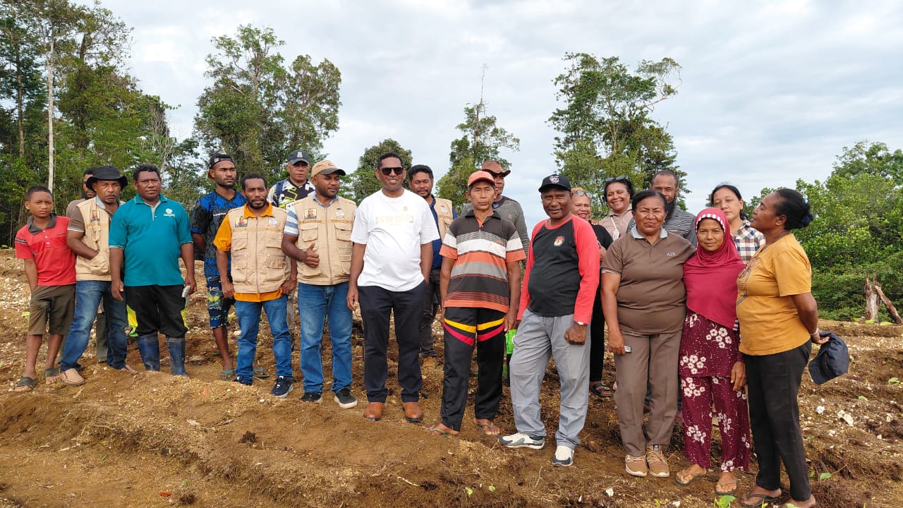 TNews, BIAK – Kunjungan kerja anggota David Harold Waromi di Kabupaten Biak Numfor dimanfaatkan dengan melakukan penanaman perdana sayuran dan buah bersama pengurus Tani Merdeka di Kampung Moibaken, Distrik Yendidori, Kabupaten Biak Numfor, Papua, Sabtu (14/3/2026).